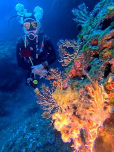 There are 2 walls 18m and 35m. It’s good for owd and Aowd divers. Very very rich with sea life and colours are amazing like paint!