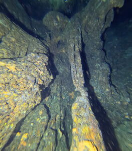 is on the walls on 28m. You can dive 70 m inside horizontal. It is very different sound of surface, different pressure feeling. Beautiful walls left right up down. On the way back is bad visability if you didnt care before sbout it.